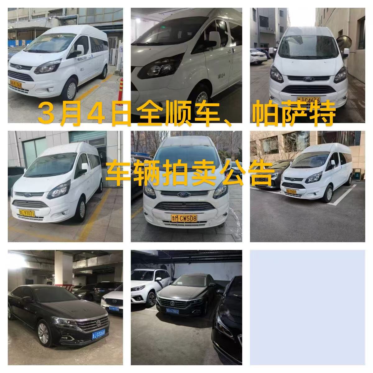 3月4日全顺车、帕萨特车辆拍卖公告