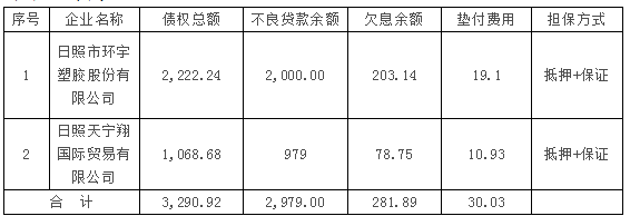 中国长城资产管理股份有限公司山东省分公司对 日照市环宇塑胶股份有限公司等2户债权营销公告
