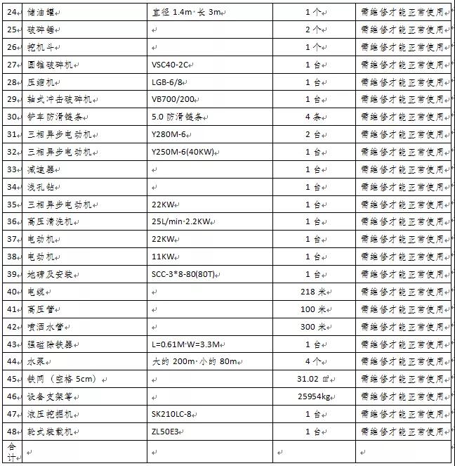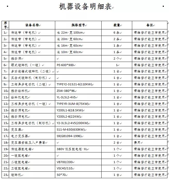 我公司接受委托,定于2021年03月05日上午10时在我公司拍卖大厅举行拍卖会,公开拍卖一批采石场可利用的旧机械设备和废旧物资,合计48项,实行整体拍卖。可利用的主要设备有传送带(带电机)、颚式破碎机(一破)、多功能锤式破碎机(二破)、反击式破碎机(制砂机)、变压器、圆锥破碎机、轴式冲击破碎机、地磅、液压挖掘机、轮式装载机等,上述机械设备成新率4.5成(具体情况以标的物现状为准)现将拍卖活动相关事宜公告如下: