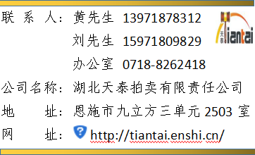 二、凡有意竞买者,持本人有效身份证件和竞买保证金缴款凭证,到我公司(恩施市九立方三单元2503室)办理报名登记手续,获取拍卖出让文件。竞买保证金金额为50万元,成交抵款,未成交无息退款。标的物自公告之日起至2021年03月04日在恩施市龙洞河路山水温泉小镇旁(原采石场院内)展示。