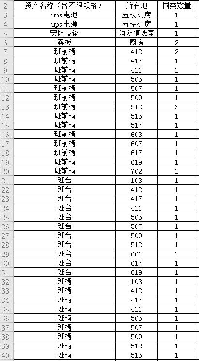 国企办公搬迁,我公司近期将公开拍卖其拥有并存放于原办公地点的办公家具、办公设备、安防设备、音响及音控设备、厨房设施等物资一宗,详情请查看物资清单.