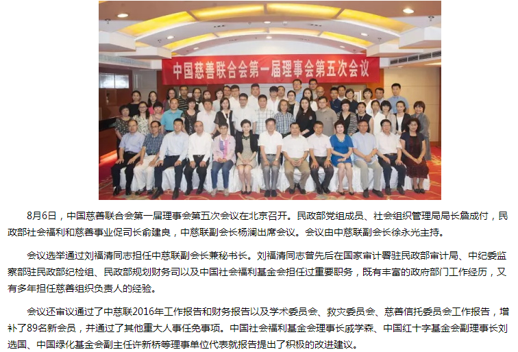 中慈联召开一届五次理事会 刘福清当选副会长兼秘书长