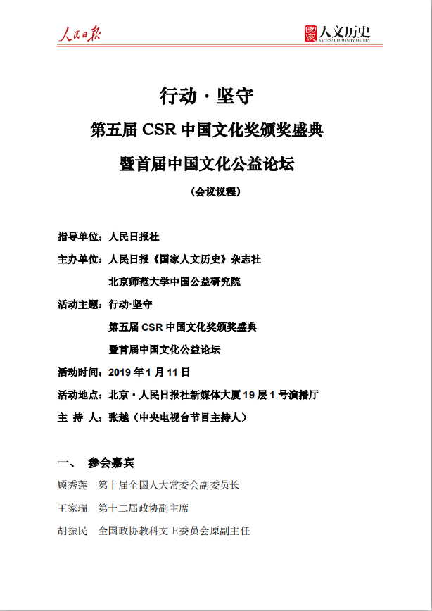 行动.坚守 第五届CSR中国文化奖颁奖盛典暨首届中国文化公益论坛 会议议程