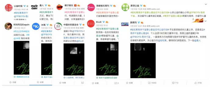此次轻松筹易烊千玺爱心基金旧书公益行动线上线下有超过10万热心公益的爱心人士的热情参与,“书”送希望,“声”传温暖,为缺乏父母陪伴的留守儿童送去关爱,为他们的希望续航。微博话题阅读量超过7300万,全网传播覆盖1.6亿人次。