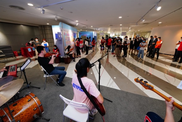 “七月的风懒懒的,连云都变热热的……”午后的珠江新城响起一段悠扬乐声,台上几位乐队成员吹拉弹唱,台下一位画家专注作画,旁边还有一辆1:1的巴士“驶出”站台,过路的白领纷纷被活动吸引,这场别出心裁的盛夏音乐派对就出现在支持性就业倡导公益活动“好好吃口口乐”甜心下午茶的活动现场。