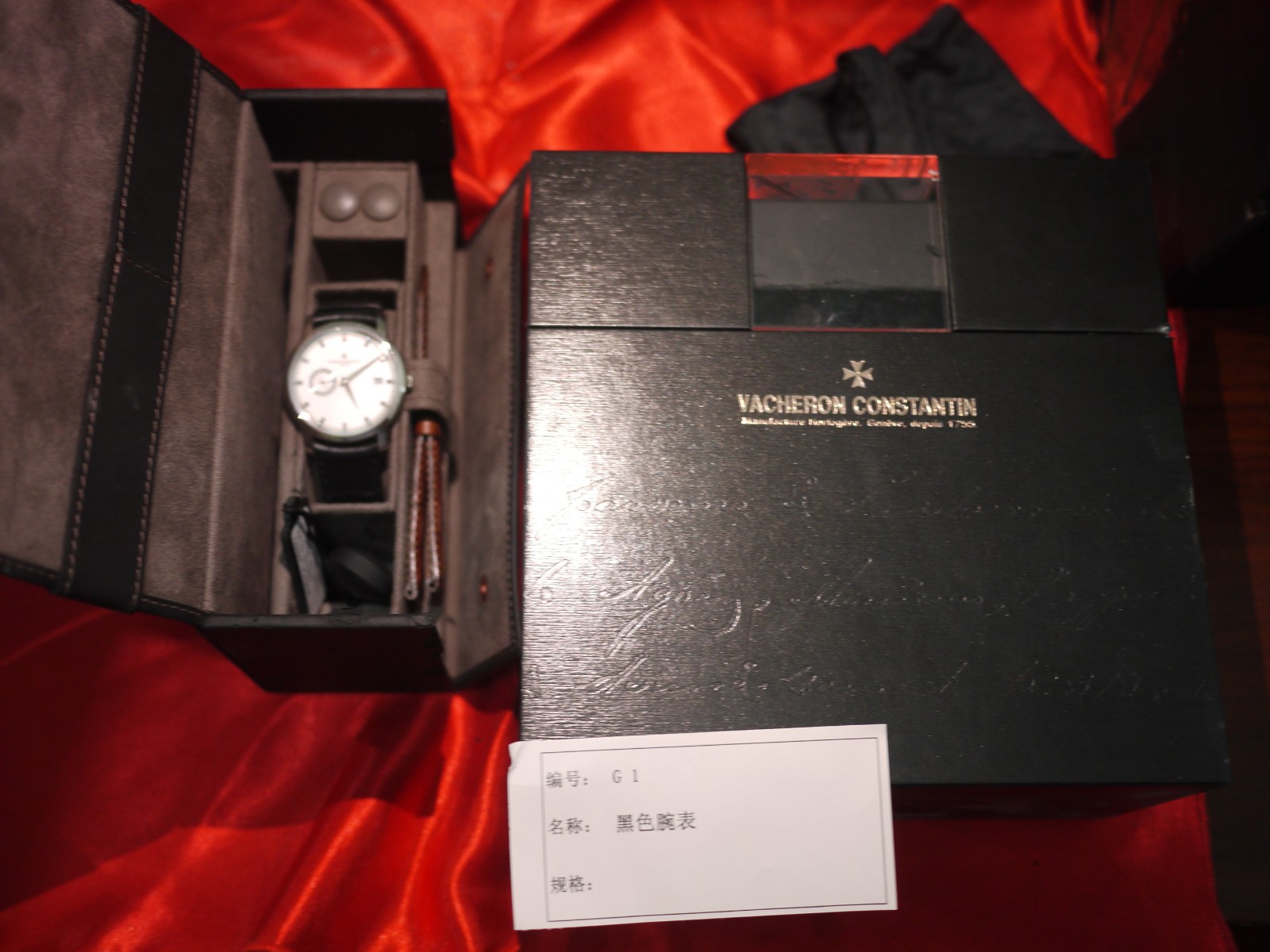 黑色腕表,8成新18K黑色皮带机械表,编号:87172/000G-9601,全新