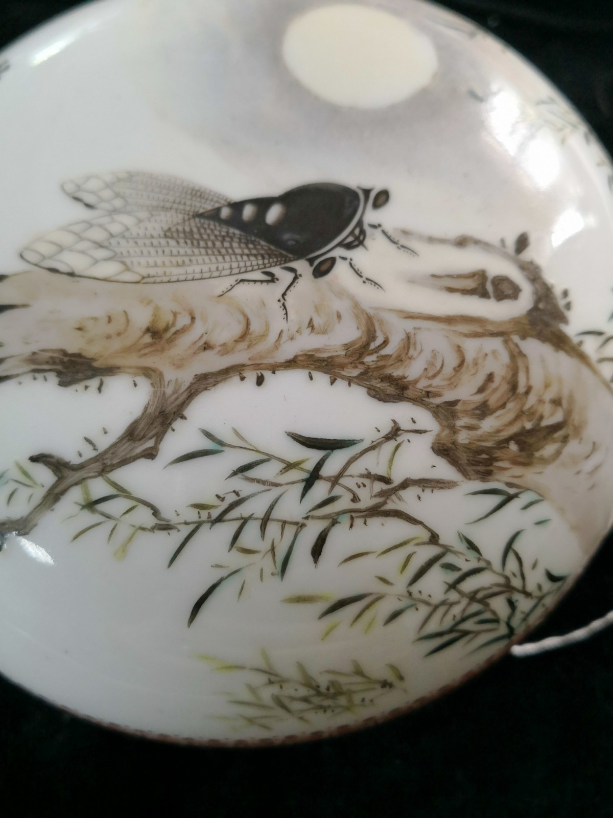 【拍品】石宇初印盒 【描述】此印盒用墨彩绘了一只蝉,栖息在树冠上鸣叫,仿佛是在唱生命的赞歌。印盒的另一侧则用墨彩写“秋虫蝉鸣,丙申年秋月石宇初画于珠山客次”。 【简介】石宇初,景德镇陶瓷名家。 籍贯江西,1940年出生于景德镇。20世纪40年代景德镇陶瓷名家,著名陶瓷大师“珠山八友”--刘雨岑的大弟子。擅长花鸟,其的作品构图严谨明快,形象生动凝练,图案纹饰与主体画面相互衬映,达到了内容和形式的高度和谐。也被称为“珠山小八友”之一。