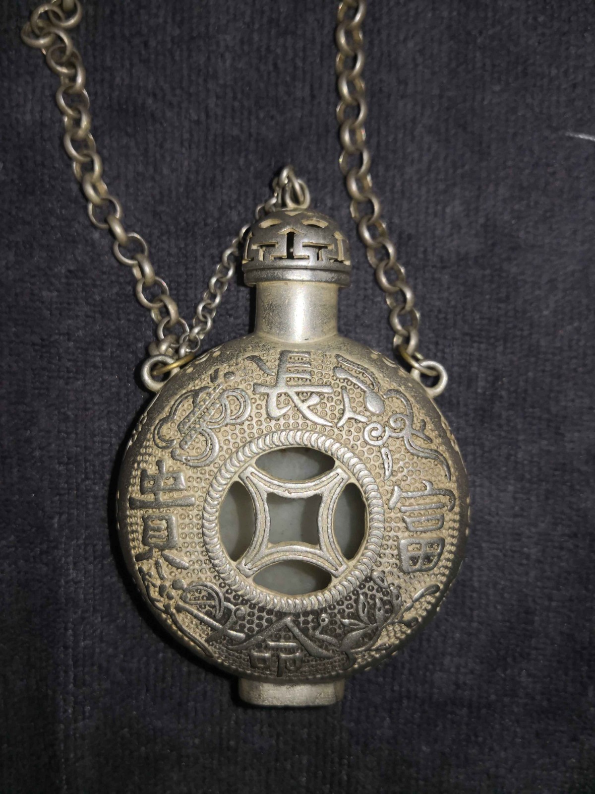 【描述】此件银包玉香囊工艺将贵金属与美玉结合,麒麟纹、“长命富贵”吉语、钱纹三重元素叠加,既是随身携带的实用器,也是承载“多福多寿、子孙绵延、富贵安康”的祥瑞佩饰,收藏与观赏价值兼具。