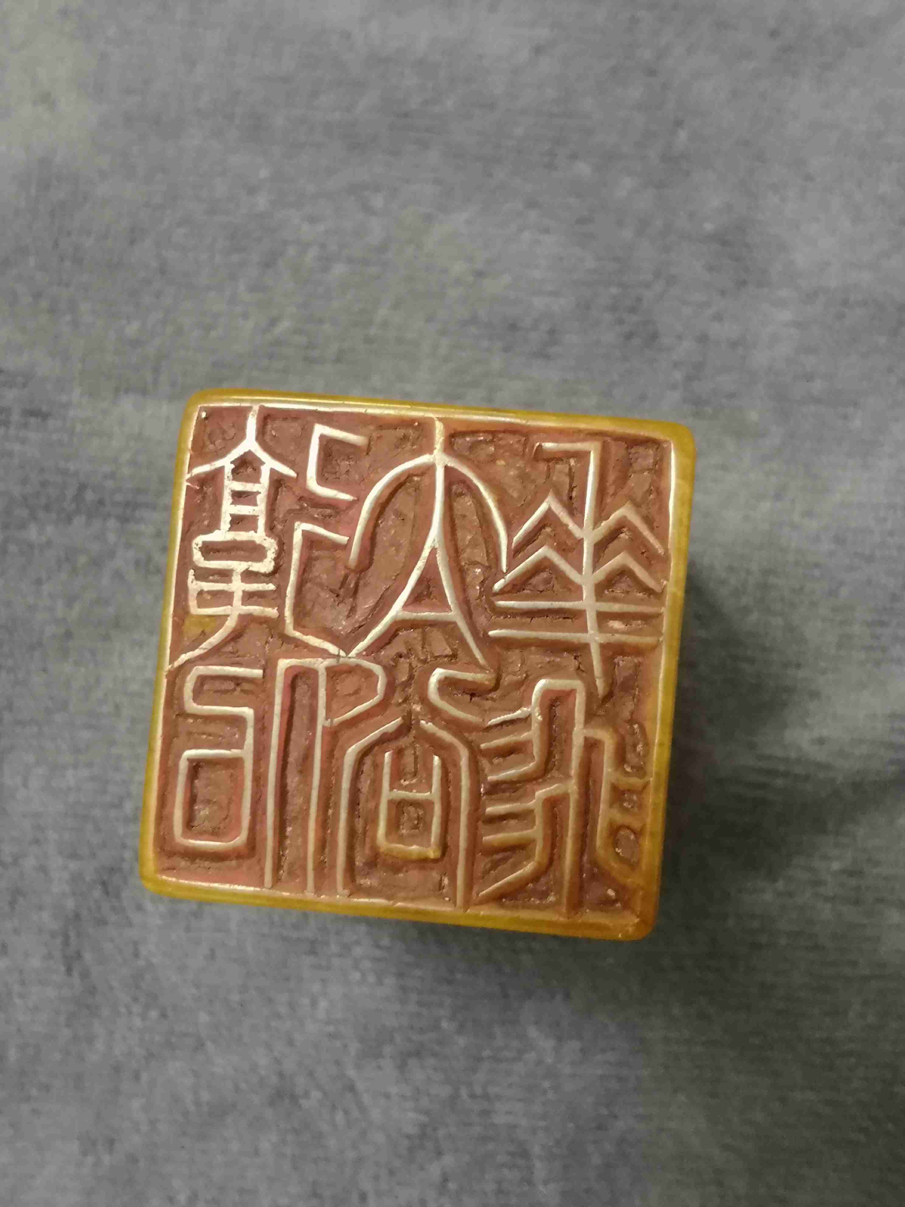 【描述】石质油润而雅静,颜色沉稳,色泽素雅,冻地非常的好,质地细腻,色泽好,收藏篆刻送人之佳品。印章雕刻文字“乙未年石如巾”,底部镌刻“后佀太谷华飞”字样。