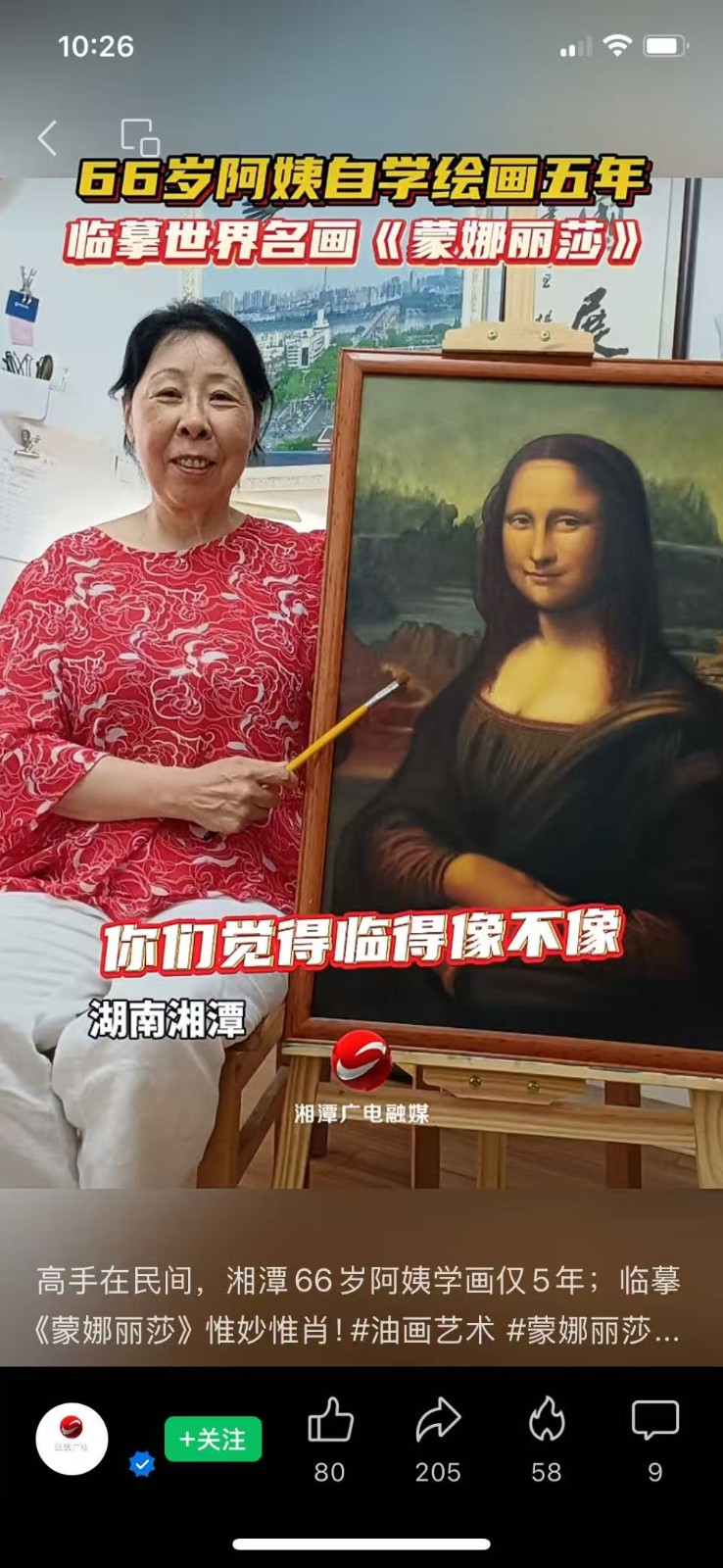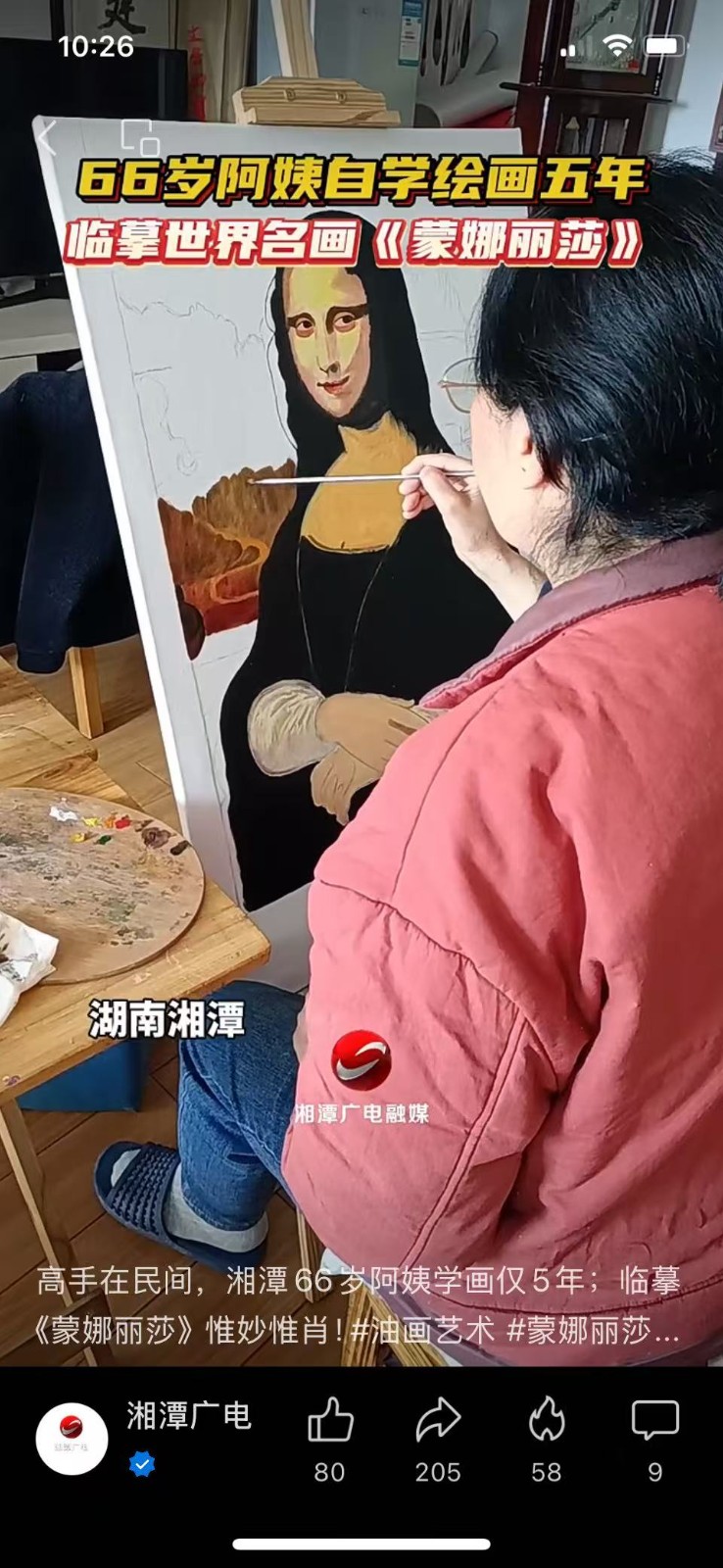白石故里——湖南湘潭自学成才画家戴伟老师,受名人指点历经8个月的时间临摹出一幅”蒙娜丽莎“油画,广受各界书画名家、湘潭各大电台、书画爱好者的高评。