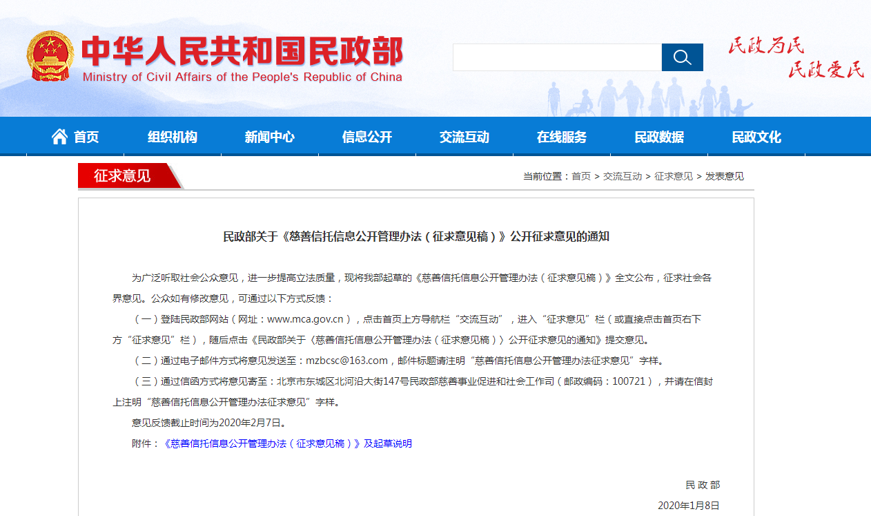 民政部关于《慈善信托信息公开管理办法(征求意见稿)》公开征求意见的通知