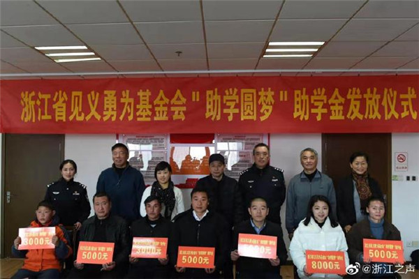 浙江省见义勇为基金会“助学圆梦”助学金发放仪式在丽水市公安局举行