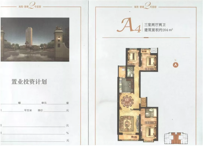 位于呼和浩特市回民区中山西路与锡林郭勒南路交汇处海亮誉峰2号楼3楼301室住宅,建筑面积204平米,五证齐全,包改合同,年租金5W以上。