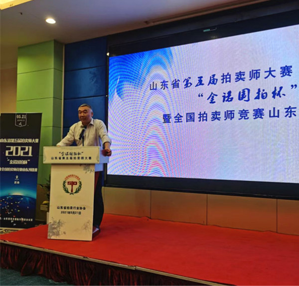2021年5月21日,山东省第五届拍卖师大赛“金诺国拍杯”暨全国拍卖师竞赛山东预选赛在济南举办,本次大赛吸引了来自全省各地20名国家注册拍卖师报名参赛,中拍协副会长、山东省拍协会长李伟出席活动并讲话,省拍协副会长宋承果、省拍协监事商雪梅出席活动。还有许多拍卖企业从业人员来到现场观摩学习。
