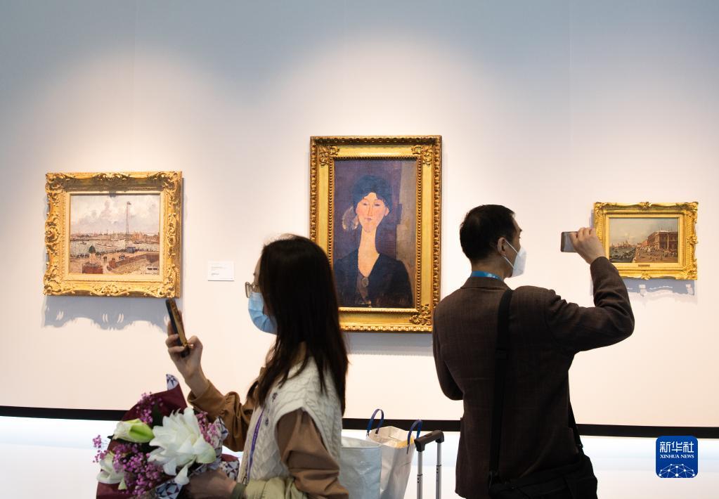 11月7日,观众在第四届进博会服务贸易展区佳士得展位参观拍摄。第四届进博会在服务贸易展区首设文物艺术品专区。新华社记者 邬惠我 摄