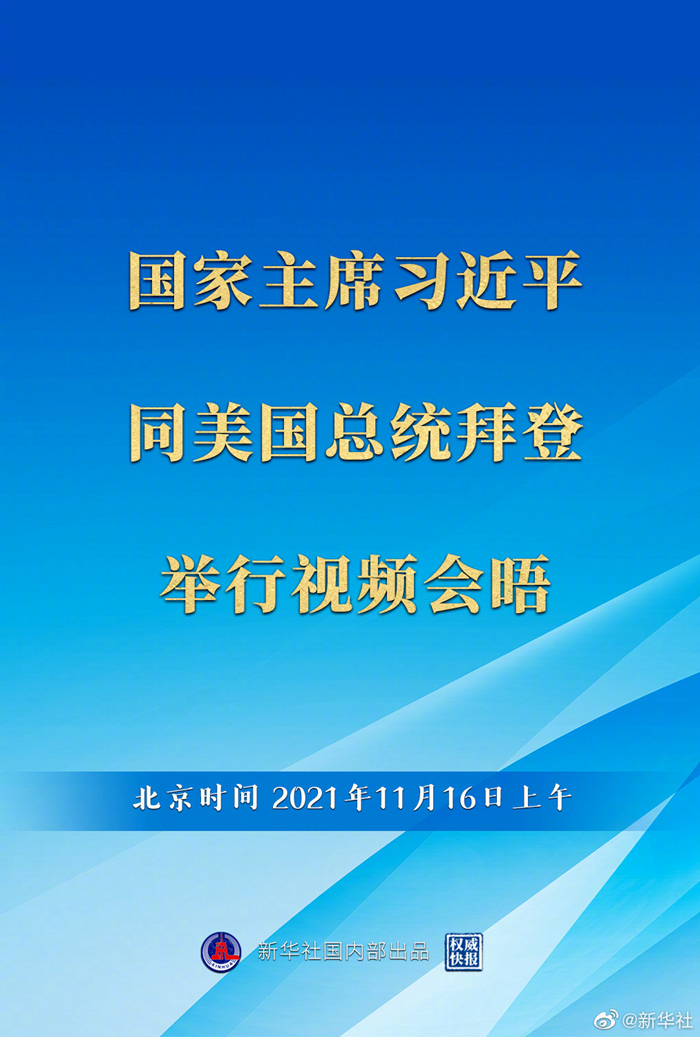 经中美双方商定,国家主席习近平于北京时间11月16日上午同美国总统拜登举行视频会晤,就中美关系和双方共同关心的问题交换意见。现在会晤已开始举行。