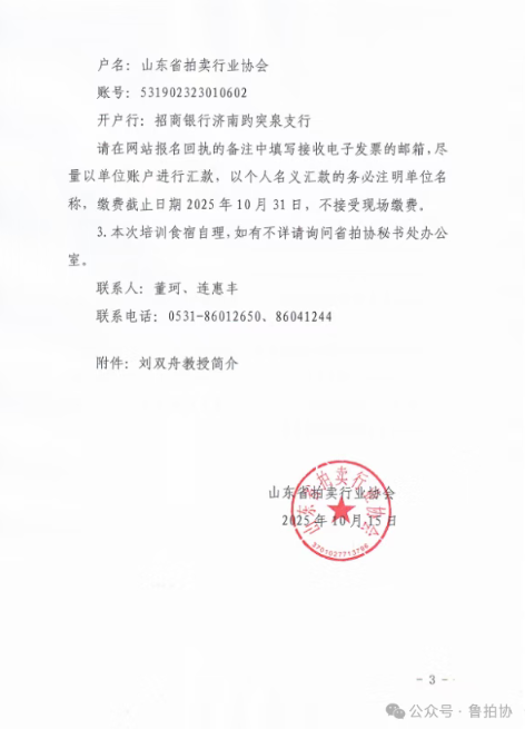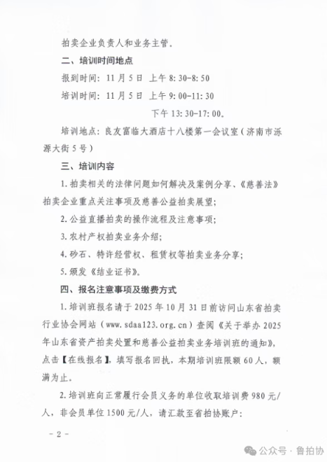 关于举办2025年山东省资产拍卖处置和慈善公益拍卖业务培训班的通知