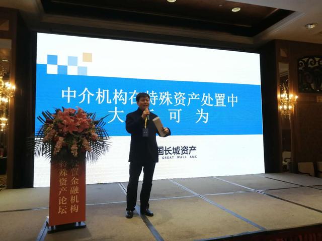 接着特邀嘉宾中国长城资产管理股份有限公司山东省分公司副总经理、风险总监,律师王斌先生发表了题为《中介机构在特殊资产处置中大有可为》的精彩演讲。王总通过典型案例主要阐述了:一、特殊资产市场蕴含丰富的商机;二、中介机构在金融特殊资产处置中大有可为;三、特殊资产常规处置方案的经验分享这三个方面,并欢迎有实力、有责任心、有情怀的中介机构参与到不良资产处置中来。