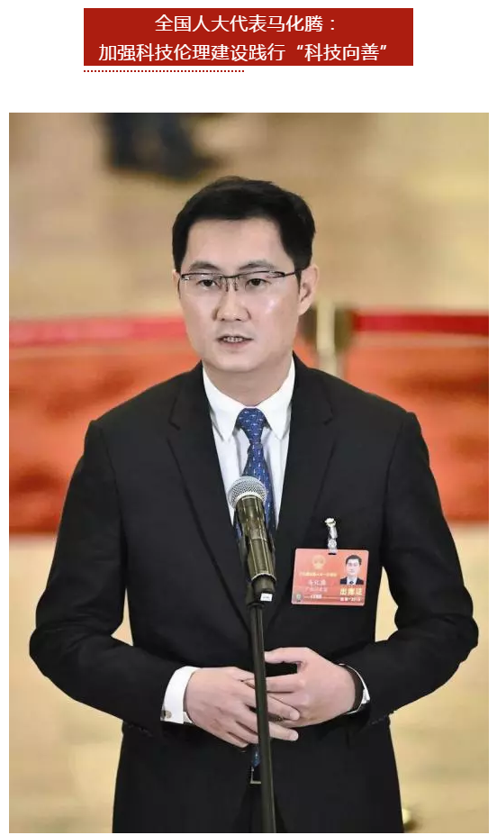 今年两会,全国人大代表、腾讯董事会主席兼首席执行官马化腾带来七份书面建议,其中就包括《关于加强科技伦理建设践行科技向善理念的建议》。针对加强科技伦理建设,践行“科技向善”,马化腾提出三点建议: