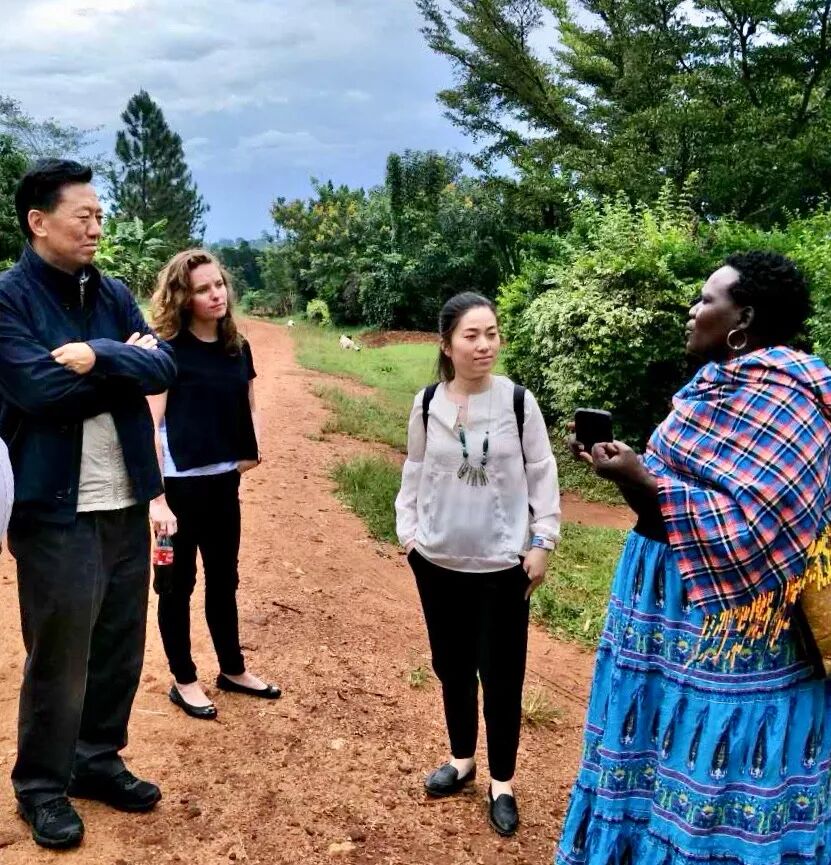 何道峰(左一)在乌干达边境调研妇女发展能力项目