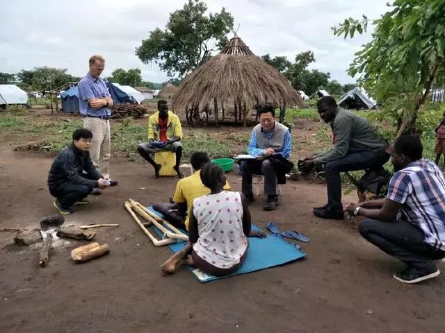 2018年4月,何道峰在乌干达边境的难民社区考察。