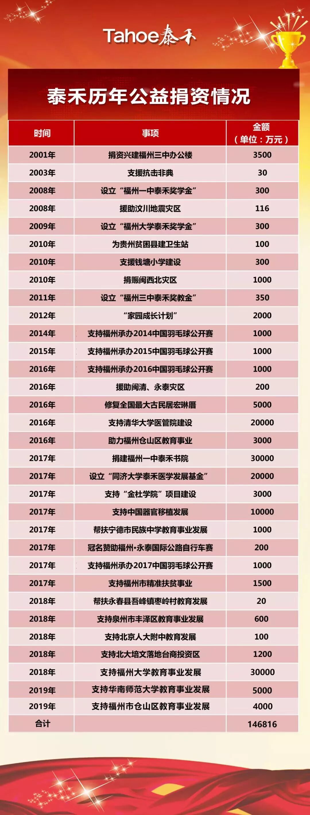 对于社会慈善与公益事业,泰禾集团一直以来都身体力行。尤其是在兴资助教方面,2018年10月27日,福州大学迎来60周年校庆之际,泰禾集团决定向福州大学捐赠3亿元,助力福州大学的建设与发展。