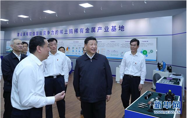 位于赣州市的江西金力永磁科技股份有限公司是一家从事稀土永磁铁研发、生产和销售的企业,年产能达到1万吨。20日中午,习近平从北京乘机抵达赣州,首先考察了这家企业。