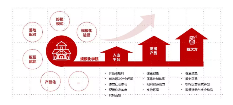在她的设想中,规模化学院最终希望引入“赛马机制”——为跑在前面的机构提供更多资源,希望能够帮助一些机构达到终极模式,并在此基础上总结这些机构成功的方法路径,将它们作为典型案例进行更大范围的推广,由此也可影响更多机构。“我们希望通过三年的学习和实践,帮助公益项目根据自身特点完成项目标准化,具备清晰的规模化战略,掌握影响力监测评估的方法,具备组织变革的能力。”