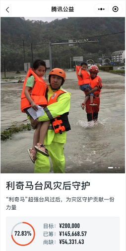 据《公益时报》记者不完全统计,截至今日(14日)上午10时,腾讯公益平台上共上线7个针对台风“利奇马”的筹款项目,筹款内容多为为灾区配备救灾物资及灾后重建。筹款目标从20万元至100万元人民币不等,筹款进度较差,详细情况如下: