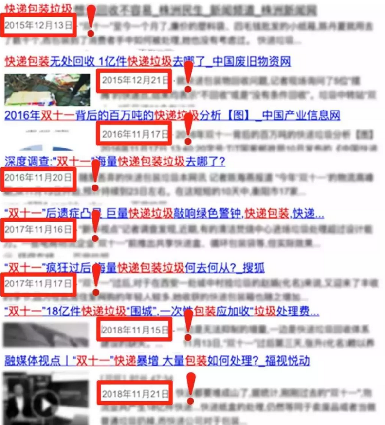 平均每个人扔掉约 2 个快递袋,约有 3 万吨塑料随即被运往垃圾场。快递包装垃圾问题算不上什么新鲜事了,几乎年年登上各大媒体的头条。