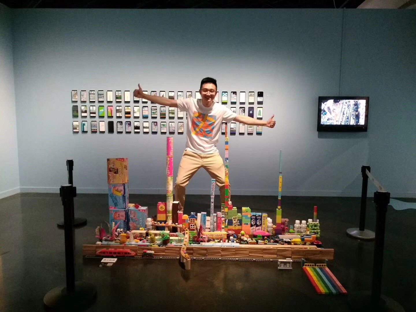 作为画展志愿者,鲁帆会向参观的人们讲一讲王翔的故事:这是一个喜欢搭积木、酷爱汽车和城市的精智障碍孩子……