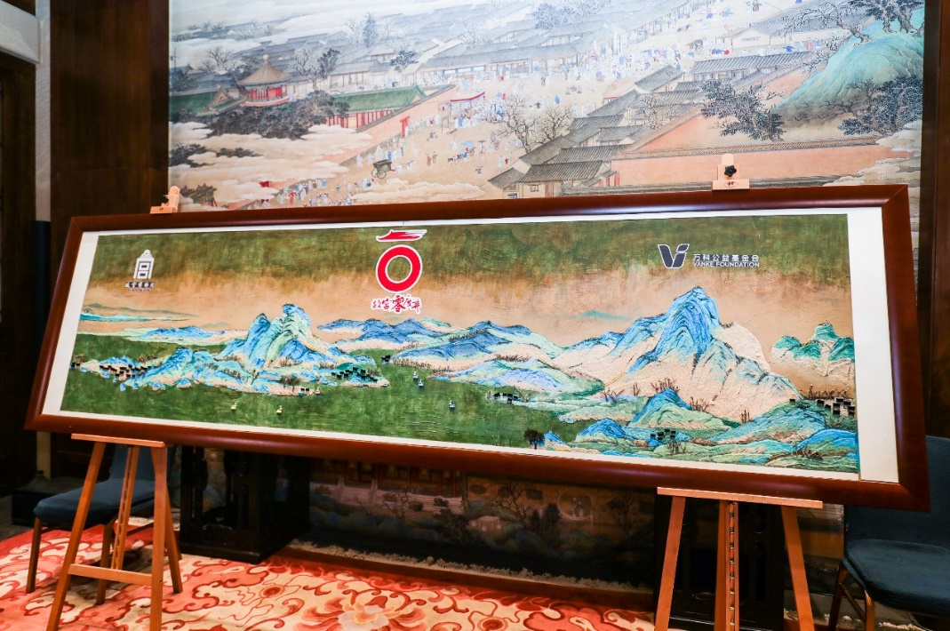 为践行“零废弃”理念,项目签约启动仪式的所有现场物料均是由可回收可再生物品制作而成,其中项目启动揭幕画面为一幅由办公废弃物品制作而成的《千里江山图》,活动嘉宾手礼为一次性水杯制作而成的扇面画小品以及一个由三个废弃塑料瓶回收制作的环保袋。同时,嘉宾佩戴的胸花可以直接在盆中种植。