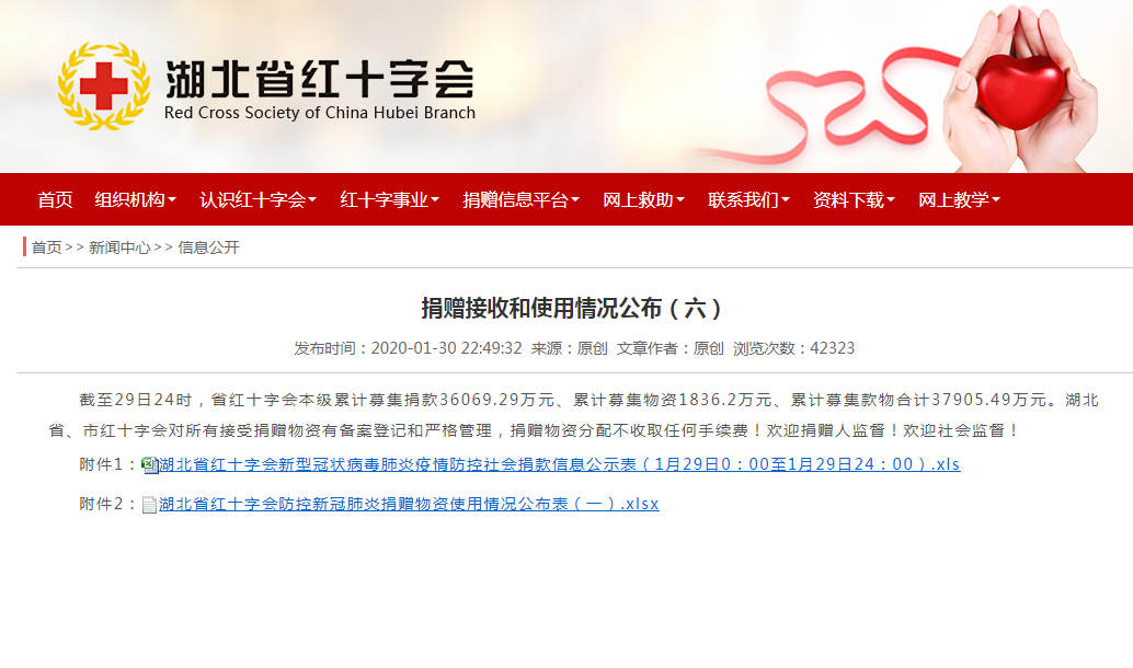 值得注意的是,1月29日和1月30日,湖北省红十字会分别在“博爱荆楚”微信公众号和门户网站上公布了第一批次防控新型冠状肺炎捐赠物资使用情况。