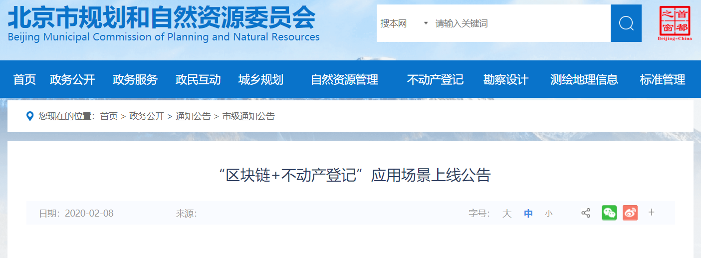据北京市规划和自然资源委员会消息,自2月8日起,北京市上线“基于区块链技术的不动产登记信息平台”升级版,推出“区块链+不动产登记”7个应用场景。相关群众和企业可登录北京市不动产登记领域网上办事服务平台办理区块链应用场景业务。与此同时,各地政府也相继公布利用新技术展开社会民生服务的决定。