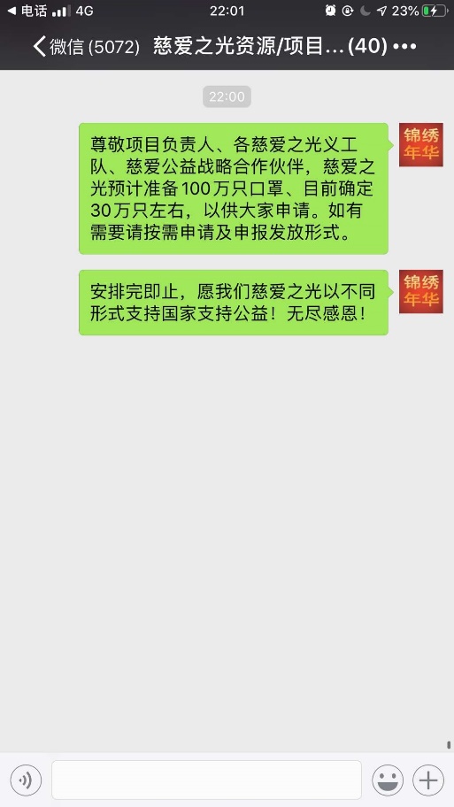 罗炳章在微信工作群发布口罩公益计划1月中下旬,新型冠状病毒肺炎疫情在全国范围内蔓延,且形势愈发严峻。作为一家基层公益组织,福建慈爱之光在获悉疫情的严重程度后,理事会层面第一时间做出反应,提出了“百万口罩免费发放公益计划”,计划向全省免费发放100万个口罩。