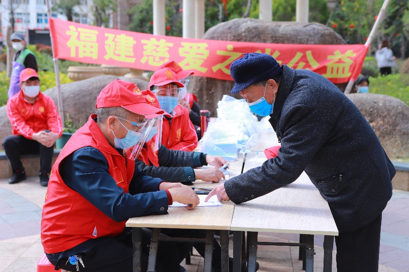 2月11日,福建慈爱之光与爱心企业在高速路口发放口罩,为在高速出入口一线执勤的工作人员加大防护力度;3月3日,厦门汉景嘉园的福建慈爱之光义工团队向小区预约业主发放爱心口罩,每人可免费领取6个……