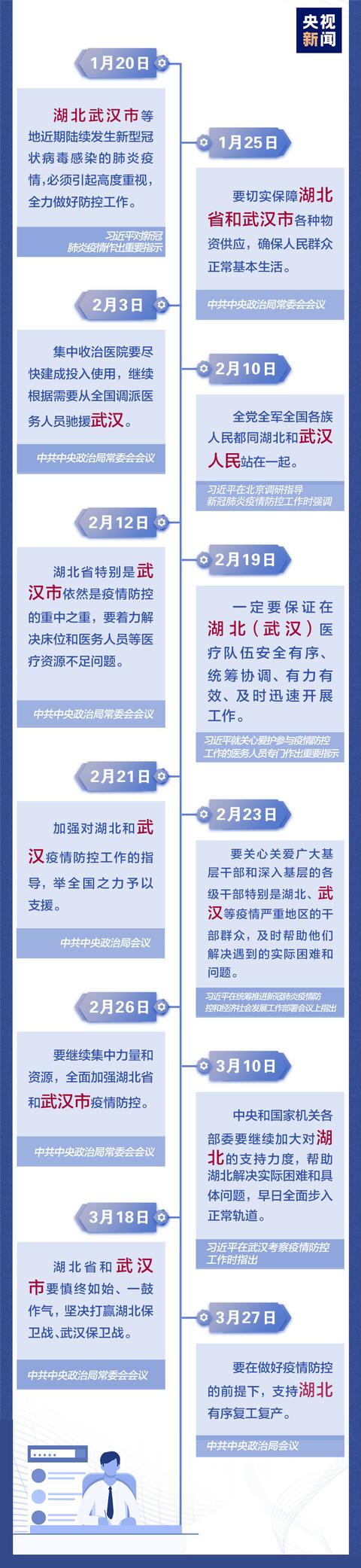 在中央政治局会议、统筹推进新冠肺炎疫情防控和经济社会发展工作部署会议上,习近平多次对武汉疫情防控工作细致部署,就不同防控形势精准施策。一系列战“疫”举措围绕武汉的现实需求密切展开,层层深入、步步推进。