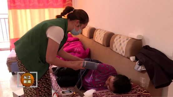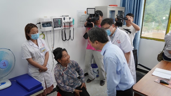 周江勇在该卫生室考察时见到了前来看病的韦小妹。她今年58岁,是丙妹镇归林村的移民,身患高血压等慢性病。她对周江勇说“感谢你们帮助了我们,我们现在看病方便多了。希望你们都好,你们好了,我们就好了。”