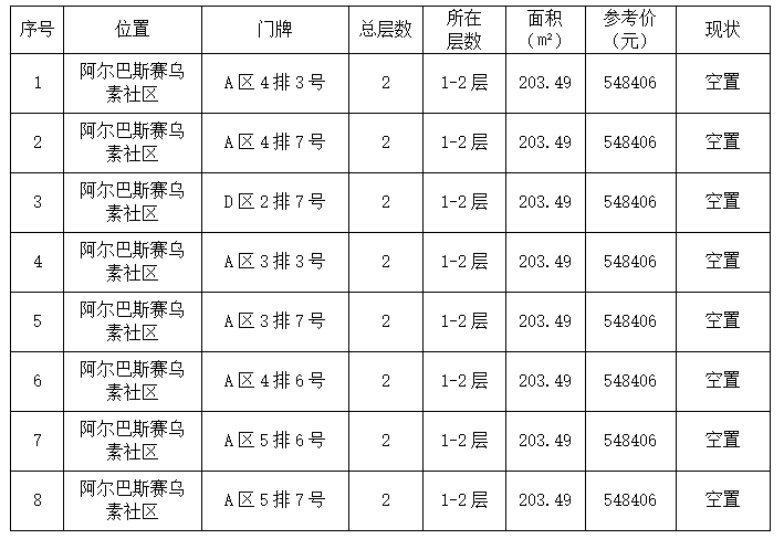5、拍卖标的物建筑面积及土地使用面积仅供参考,房屋按现状整体确定拍卖价格。