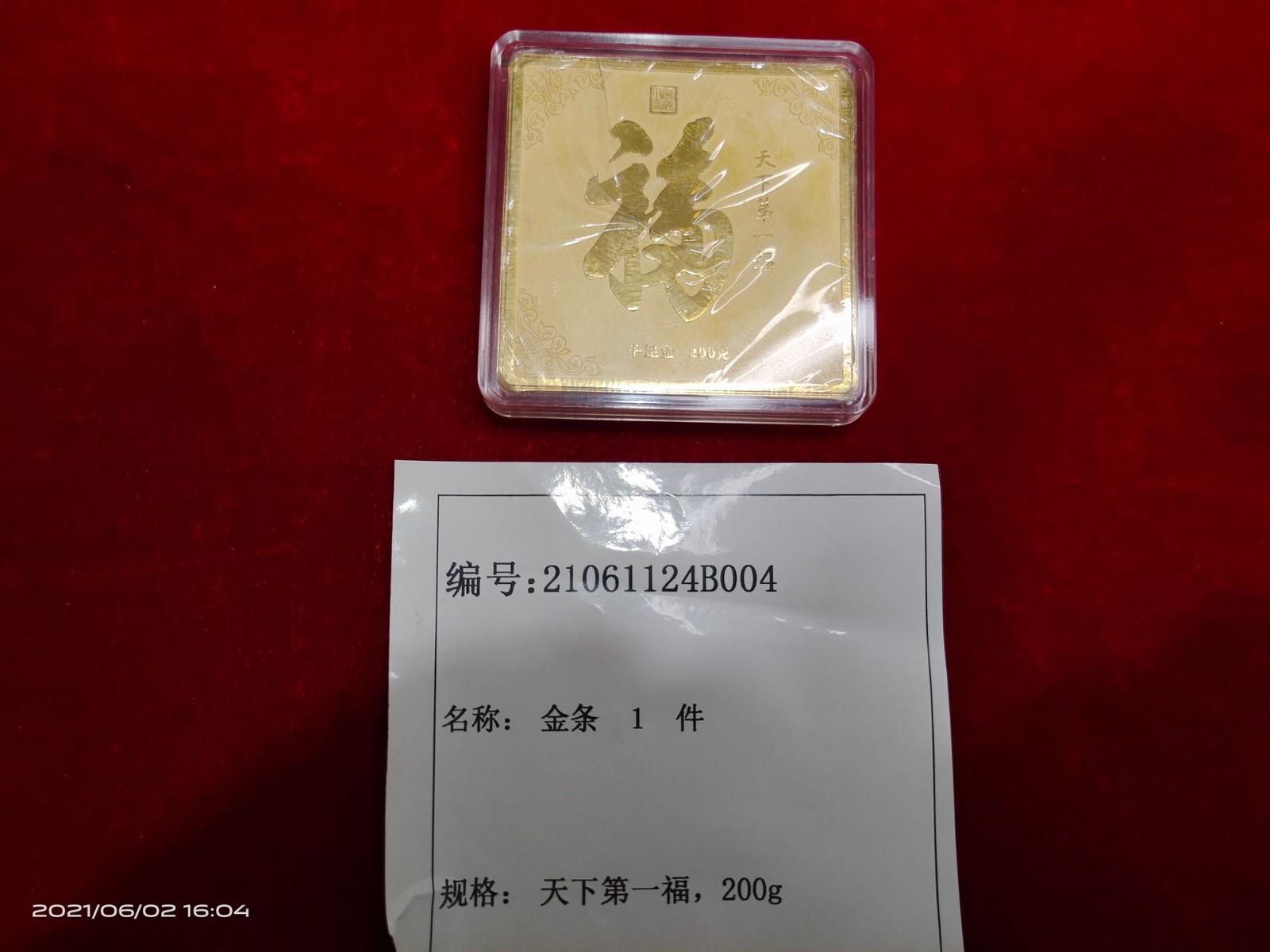 84 | 天下第一福金条 | 1 | 200 | 克 | 千足金 金砖,“天下第一福”字样 200克 | 89200 |