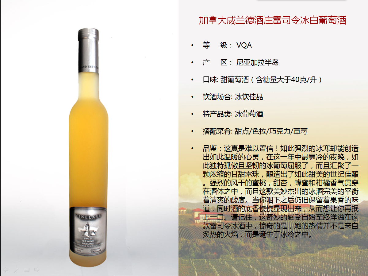 线上支付加拿大威兰德雷司令白葡萄冰酒