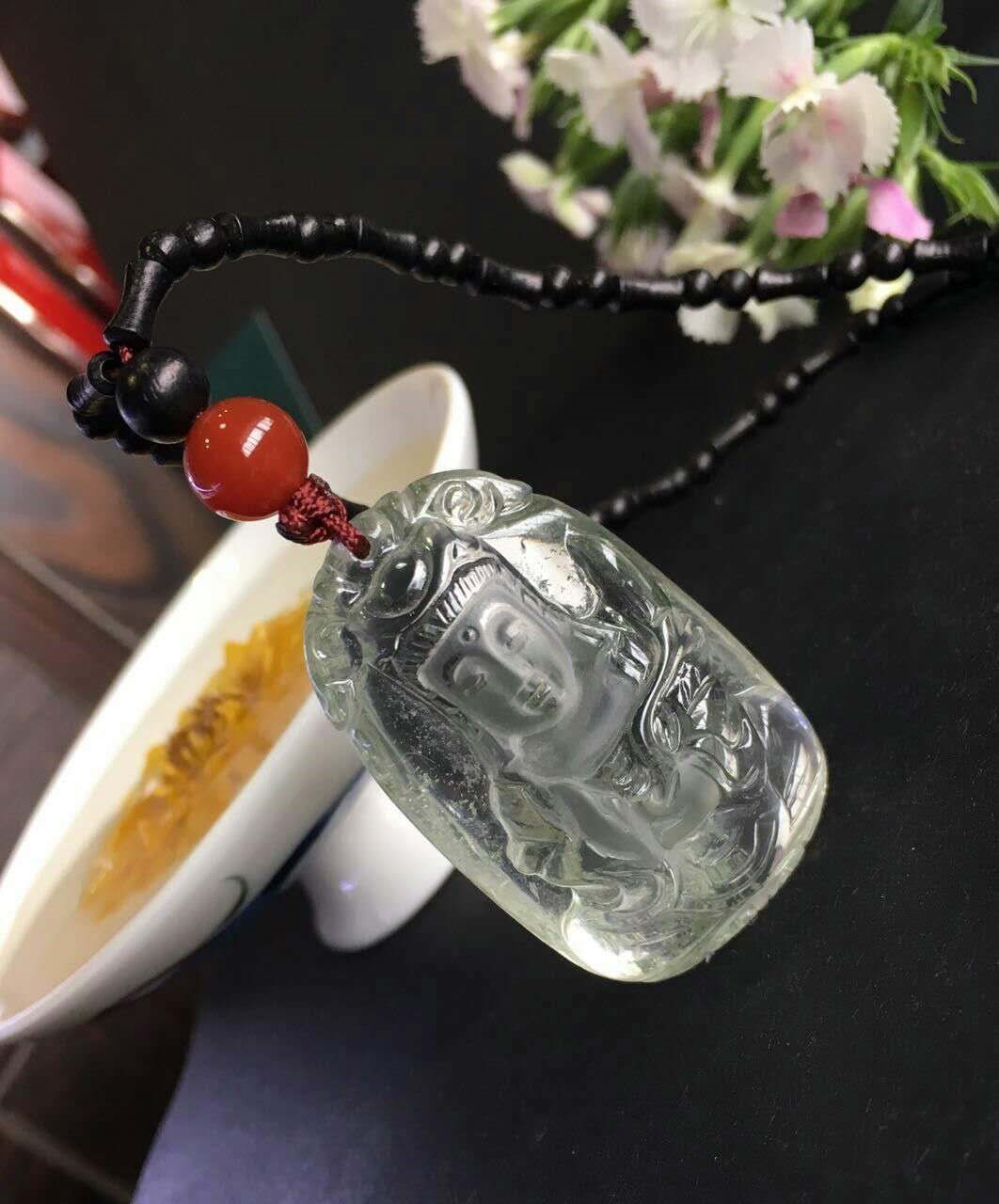 寓意:绿幽灵水晶,主事业、招财运,观音,平安吉祥、护佑一生。