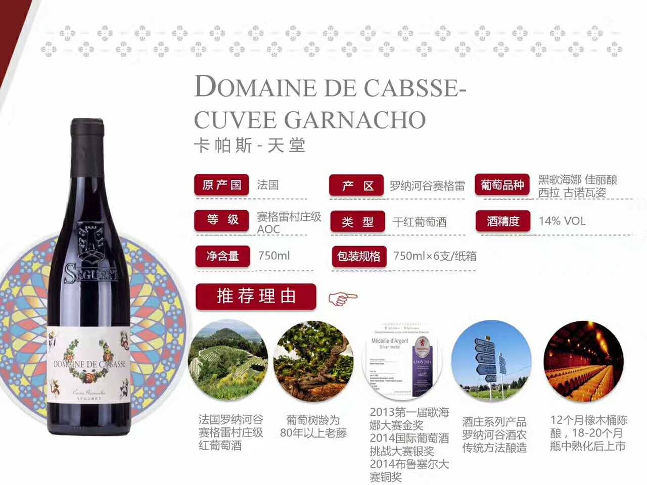 线上支付法国卡帕斯天堂干红葡萄酒