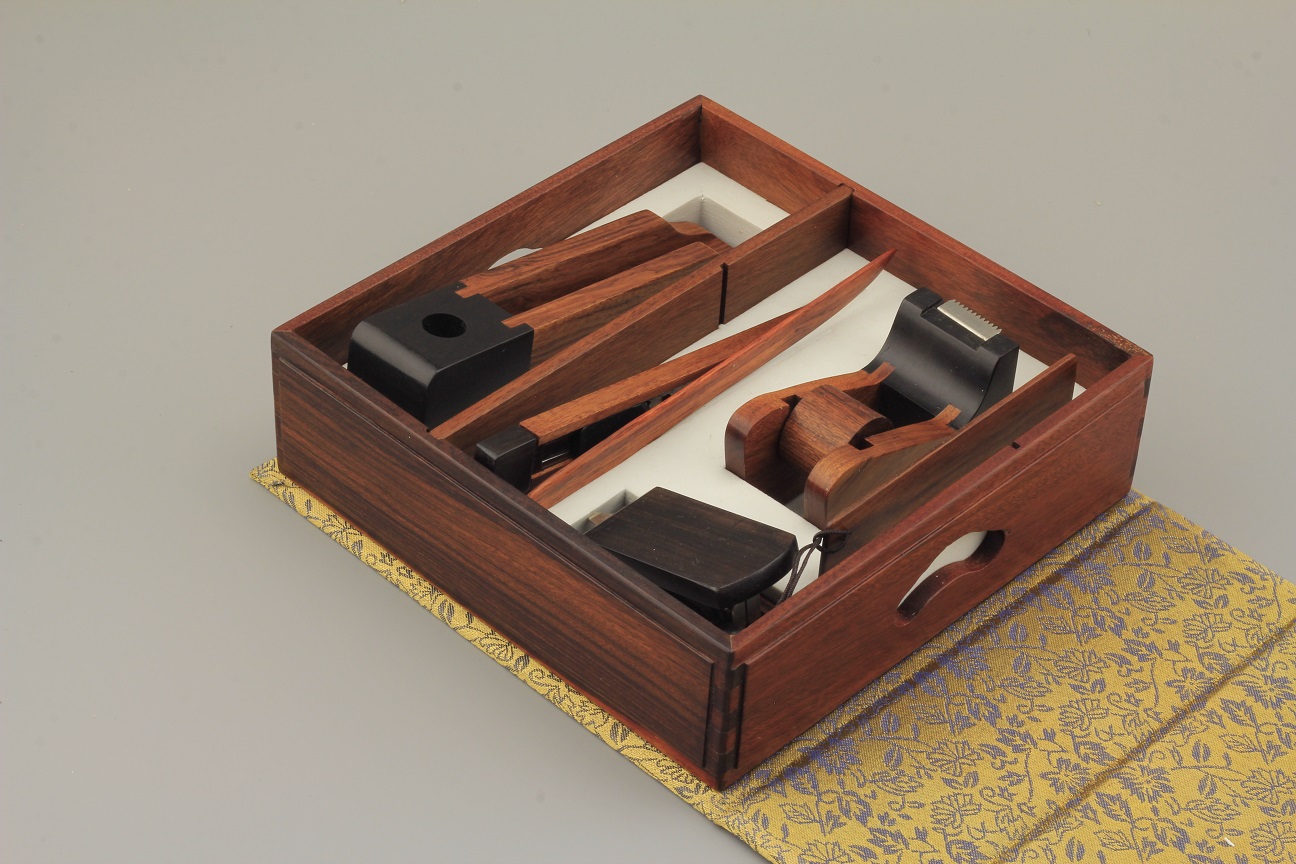 玲珑办公系列选用上乘紫光檀(国标红木—东非黑黄檀)、非洲酸枝(名贵硬木),运用传统刮毛、烫蜡等传统工艺精制而成。将传统文化融入现代便捷办公中,精巧雅致,简洁实用,套装配以收纳盒,方便桌面整理收纳。