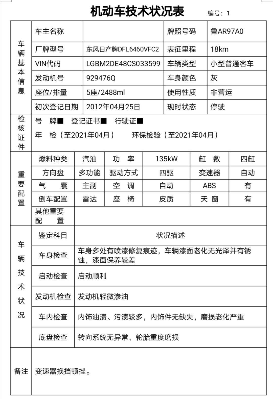 拍卖标的拍卖前的扣分、罚款、脱审、保险过期、环检过期、欠缴税费、轮胎、轮毂、发动机号、车架号、座位数不符、车体改色等与过户有关的因车辆现状问题所产生的相关费用由买受人承担并负责解决。