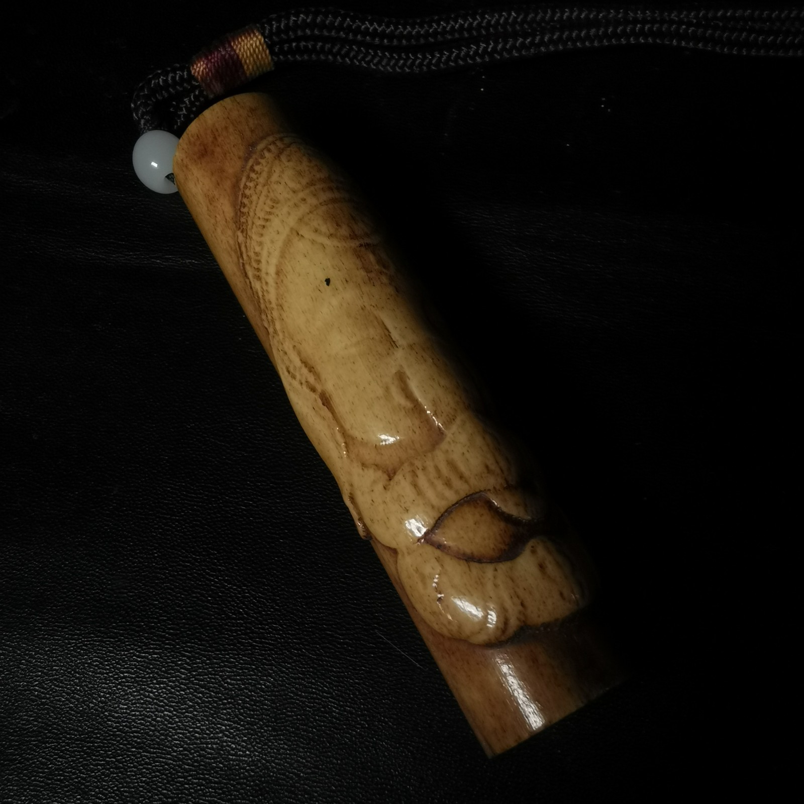 骨头手把件,规格2×8.5cm,重34g。雕刻东南亚佛像
