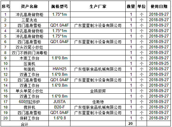 2、厨房设备一宗。参考价10650元,保证金2500元。