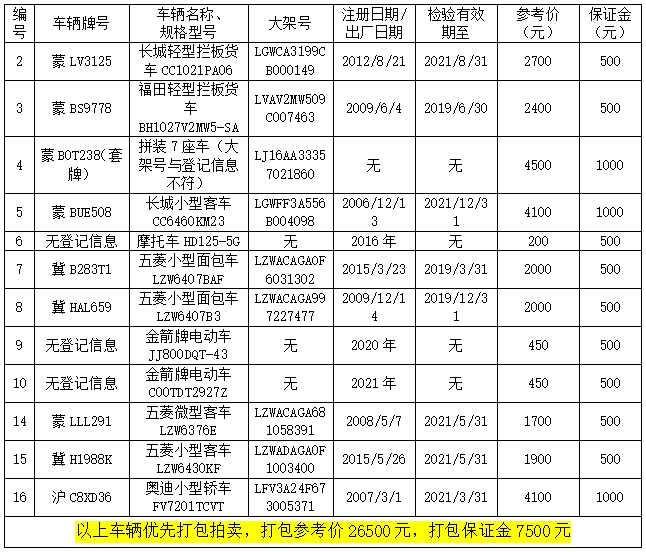 3、本次拍卖标的均不含任何税费,不能开具发票。